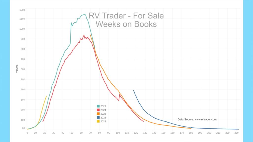 As a reminder, many but not all dealers advertise on RVTrader.com to sell inventory. It remains an excellent proxy for overall dealer inventory. You can follow my account on X at @JohnMarucci to receive weekly updates on this data.